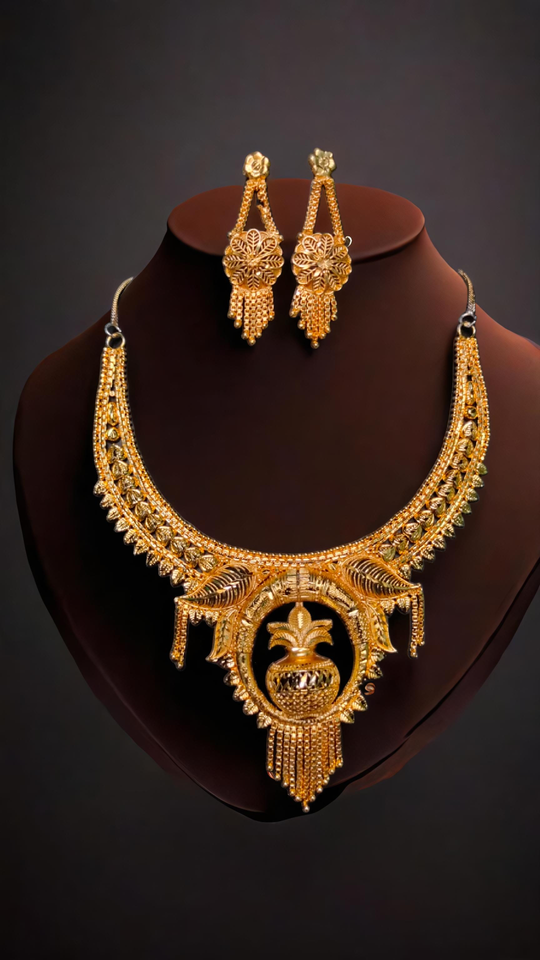 Ensemble de boucles d'oreilles collier de haute qualité avec plaqué or 22 carats Style unique femmes porter collier boucles d'oreilles ensemble bijoux