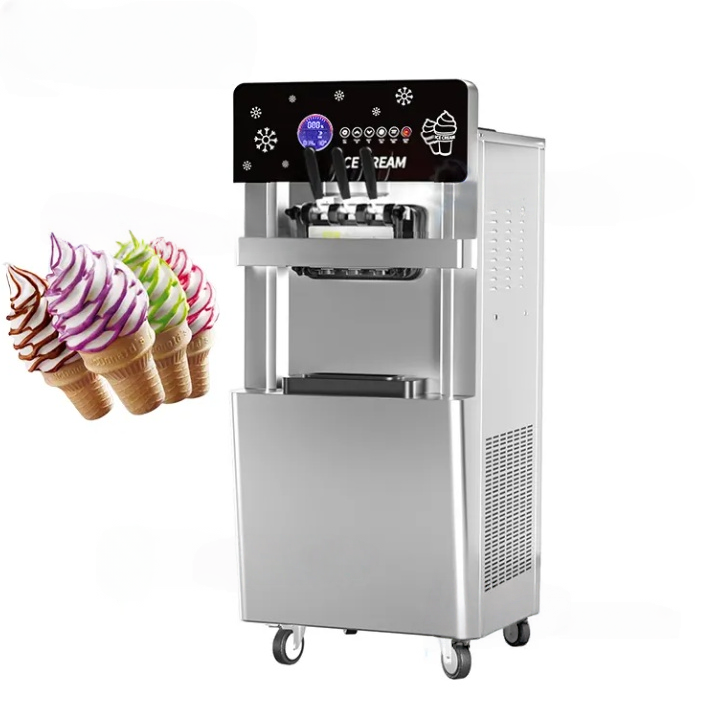 Équipement de cuisine commercial automatique en acier inoxydable de haute qualité, 3 saveurs, haute productivité, crème glacée molle, yaourt aux fruits