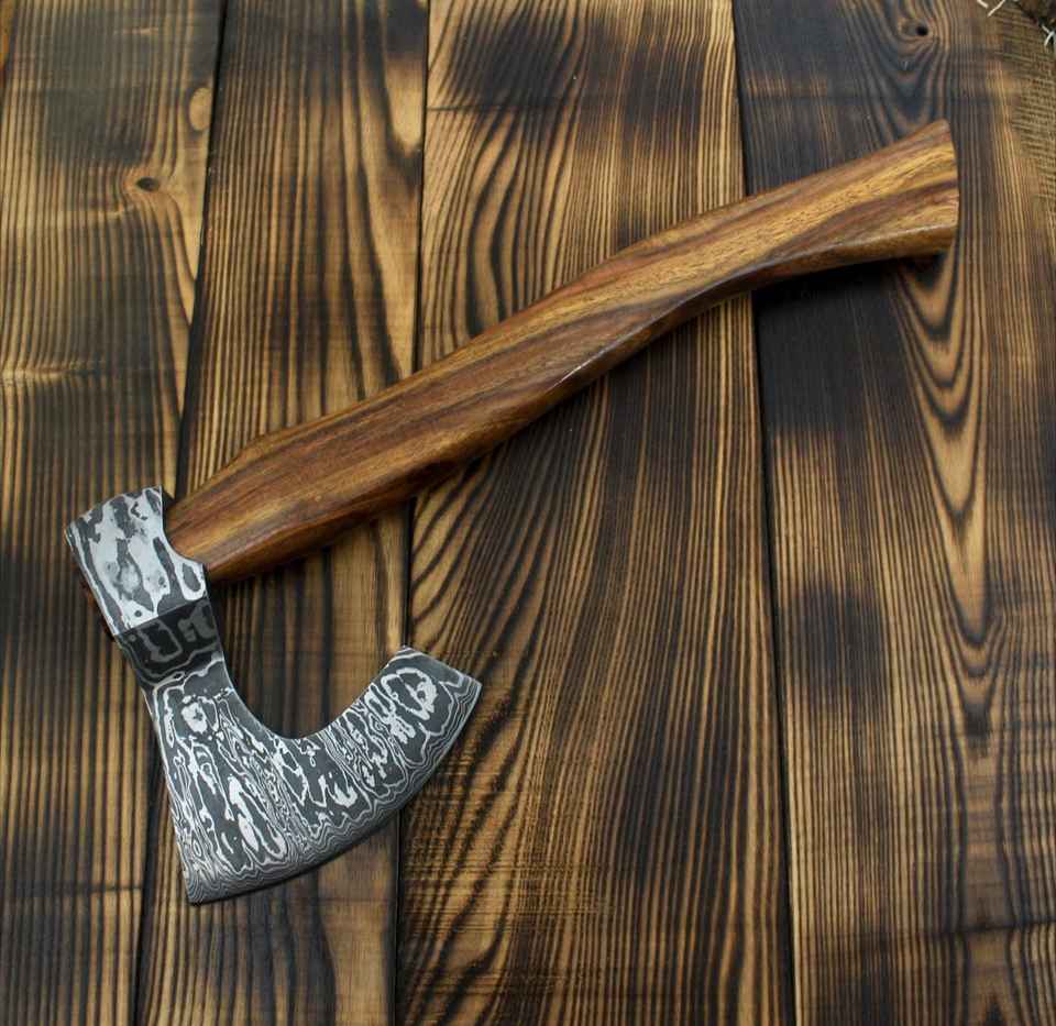 Hache de camping de haute qualité, nouveau design, acier Damas, hache viking premium, acier au carbone, avec étui en cuir fin