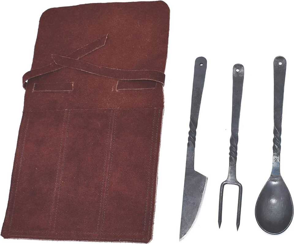 Ensemble de cuillères médiévales en acier au carbone de haute qualité, nouveau design, vente en gros 2023, outils à main, société de commerce, noir, garantie de 3 ans