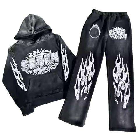 Pantalon évasé personnalisé de haute qualité, nouveau design, survêtement de jogging en coton imprimé bouffée de soleil délavé à l'acide vintage pour hommes