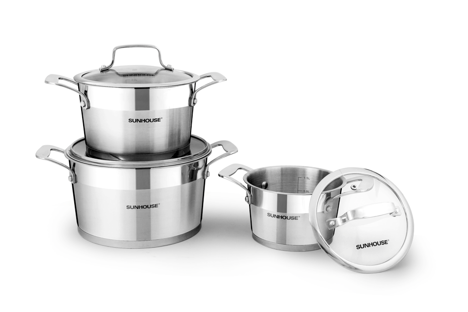 Batterie de cuisine moderne de haute qualité en acier inoxydable fabricant vietnamien prêt à l'induction lavable au lave-vaisselle vente en gros écologique
