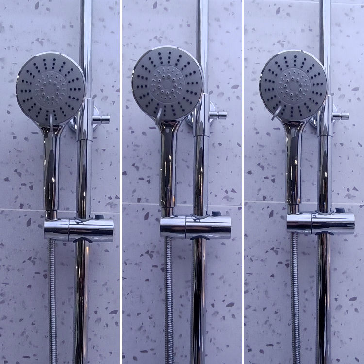 Dispositif exposé de robinet de douche:Avec barre coulissante