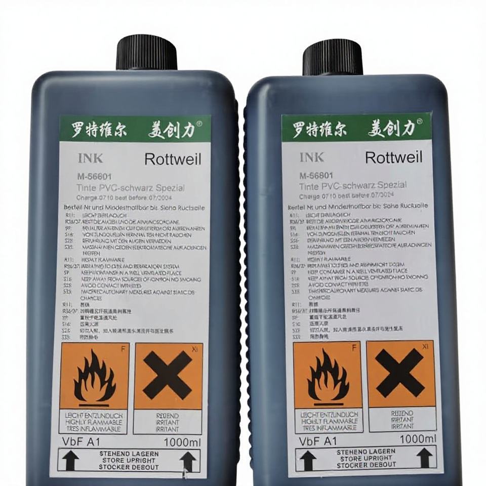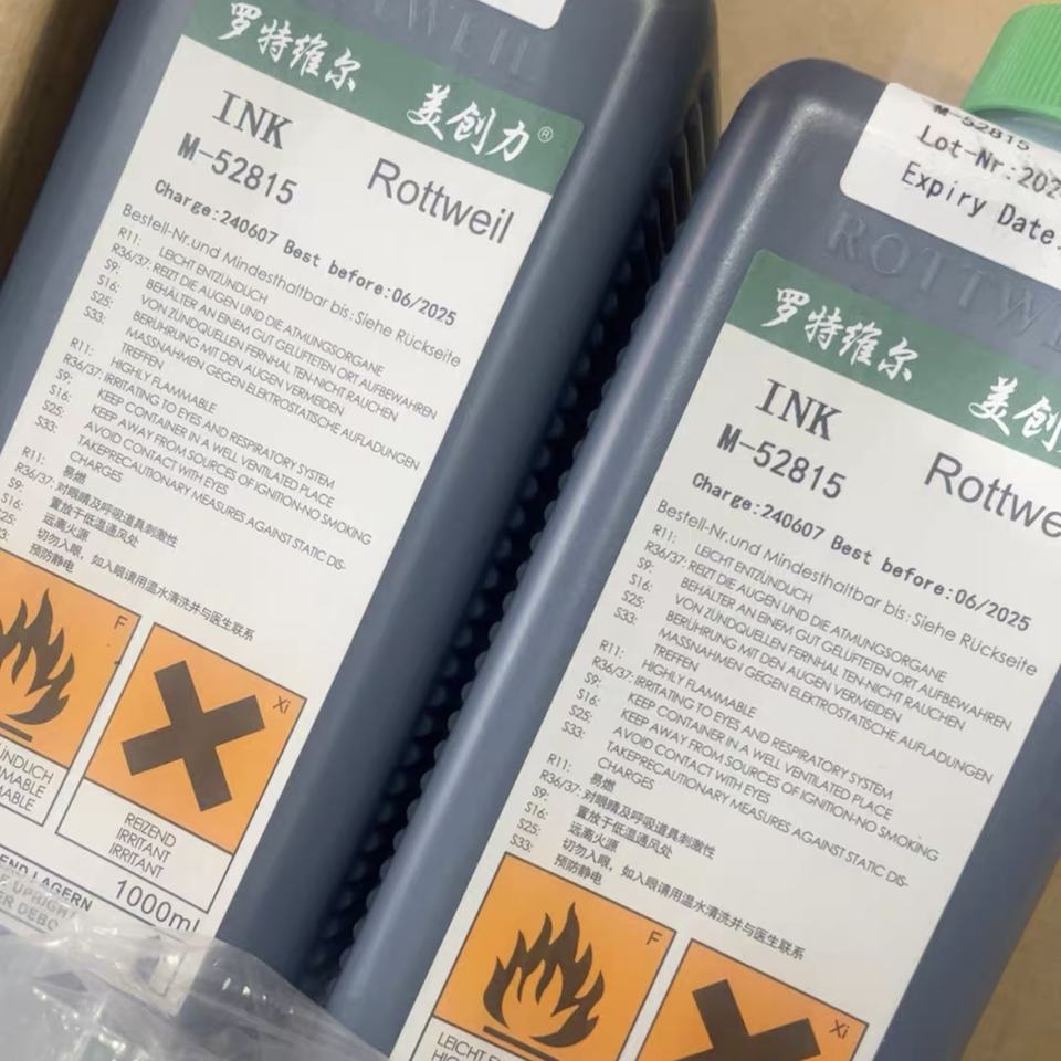 Encre noire de haute qualité New Rottweil M-52815 - Séchage rapide, résistante aux rayures pour les lignes d'emballage alimentaire
