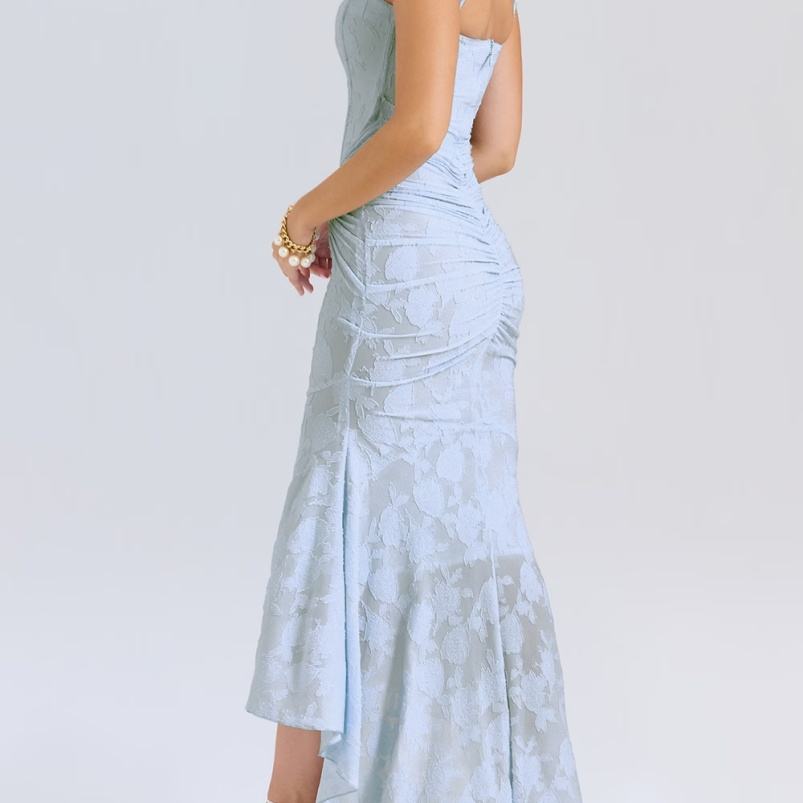 Haute qualité nouveau Vintage Jacquard Wrap dos élastique fermeture éclair ourlet irrégulier plissé décontracté femmes longues robes