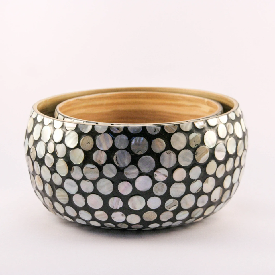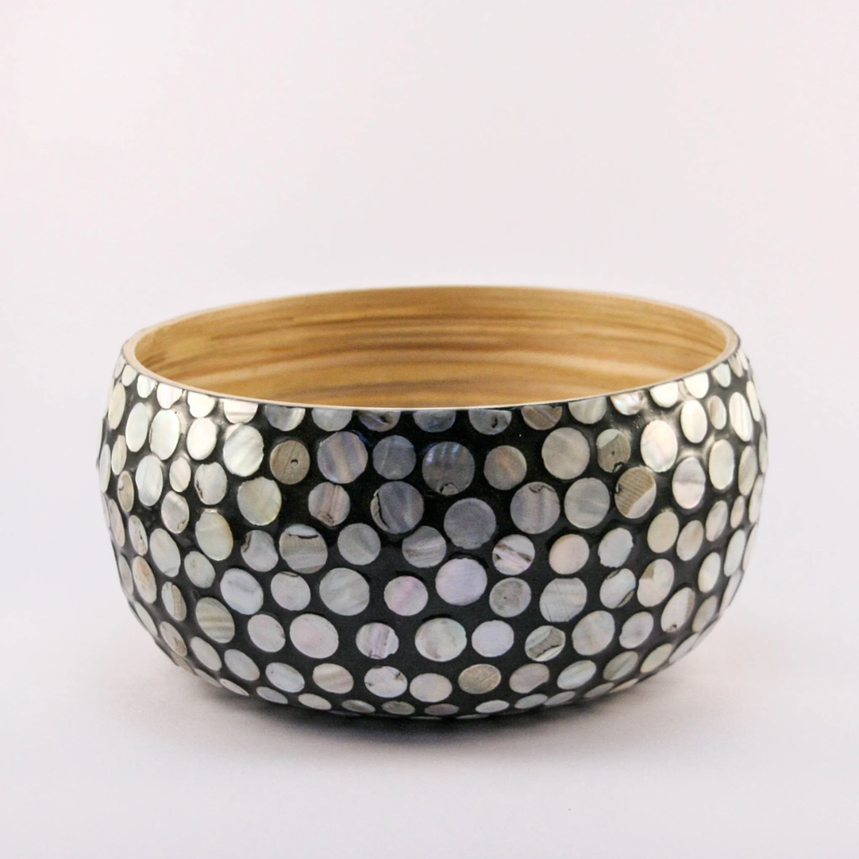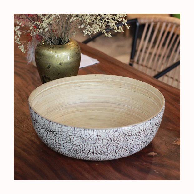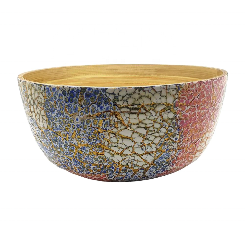Haute qualité bon prix MOP incrusté bol en bambou filé saladier vaisselle en bambou vaisselle en gros du Vietnam