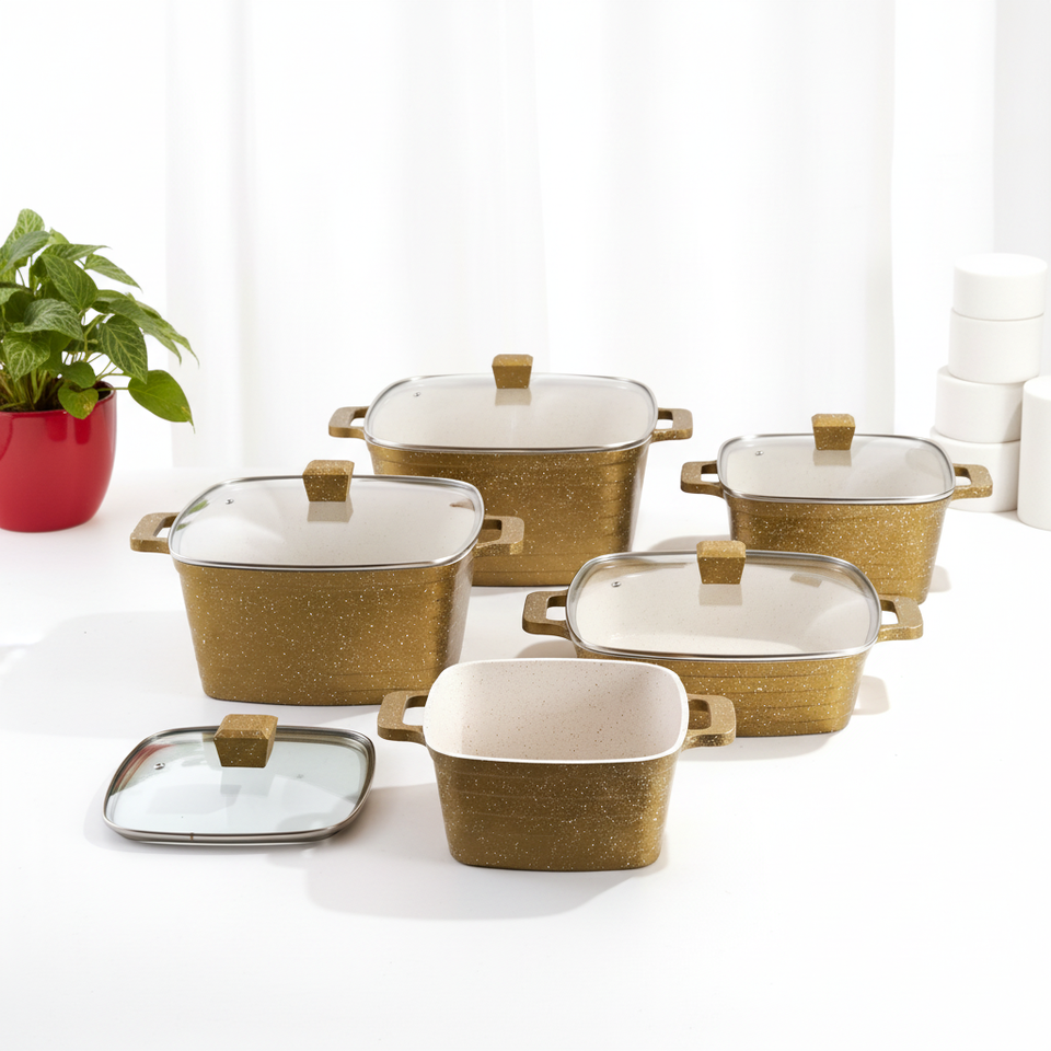 Ensemble de casseroles de haute qualité avec revêtement en marbre antiadhésif, grandes casseroles carrées ondulées, ensemble de casseroles en fonte