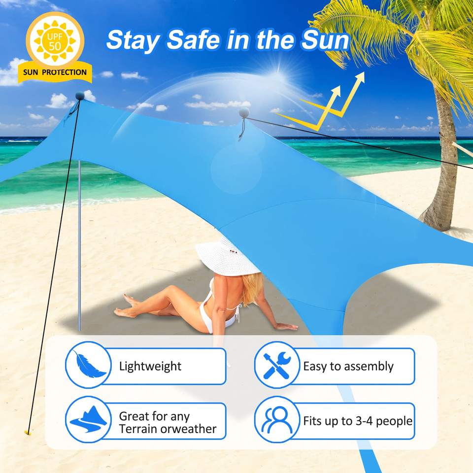 Auvent de plage durable en nylon de haute qualité, personnalisé, pour l'extérieur, avec protection UPF 50+ pour le camping