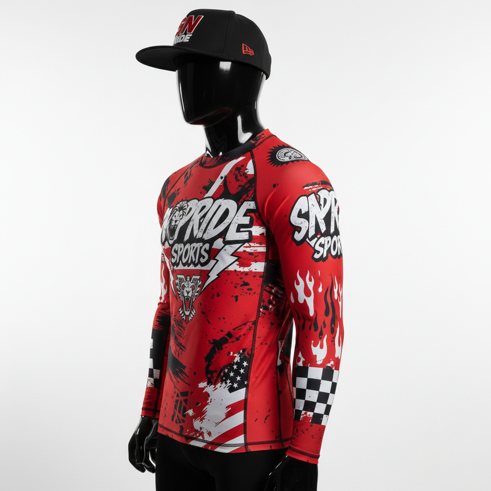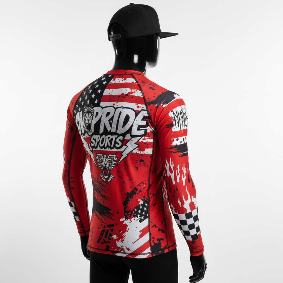 Chemises de compression à manches longues col rond en tissu extensible 4 directions à séchage rapide, personnalisables par sublimation, pour la protection contre les éruptions cutanées et le MMA, de haute qualité