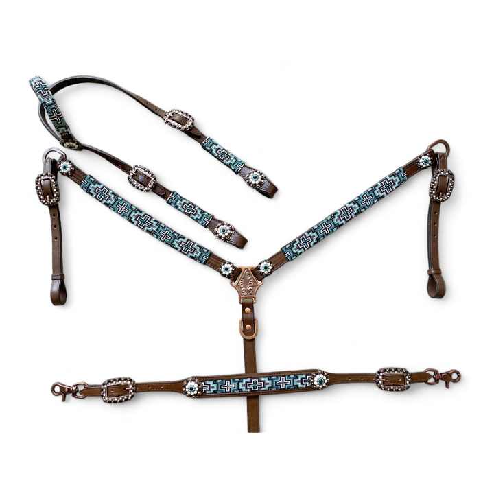 Western Horse Headstall & Breastplate With Wither Strap Set