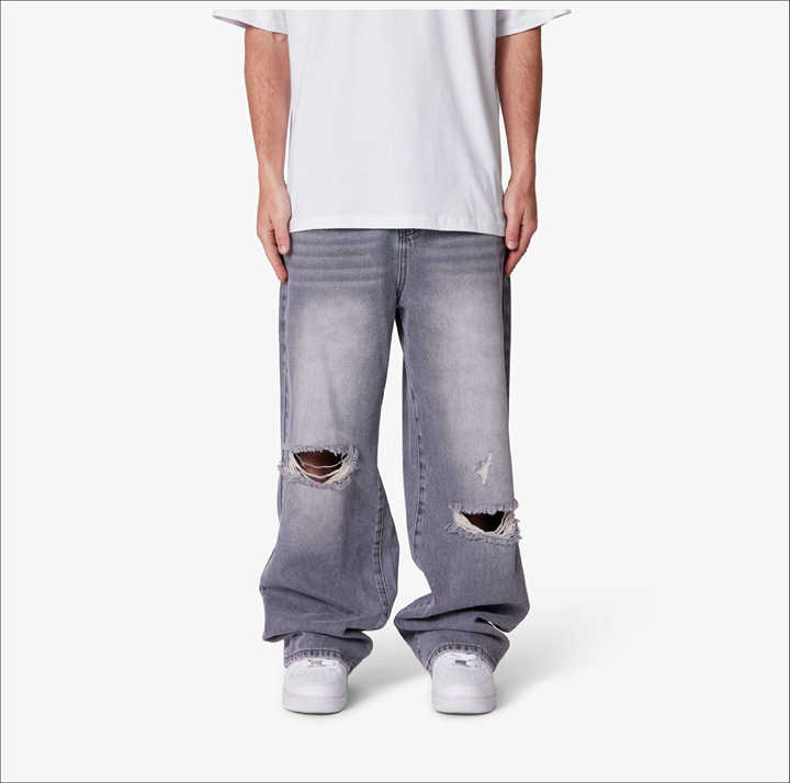 Jean baggy ample en denim délavé pour homme, taille mi-haute, léger et respirant, style hip-hop, qualité OEM personnalisée
