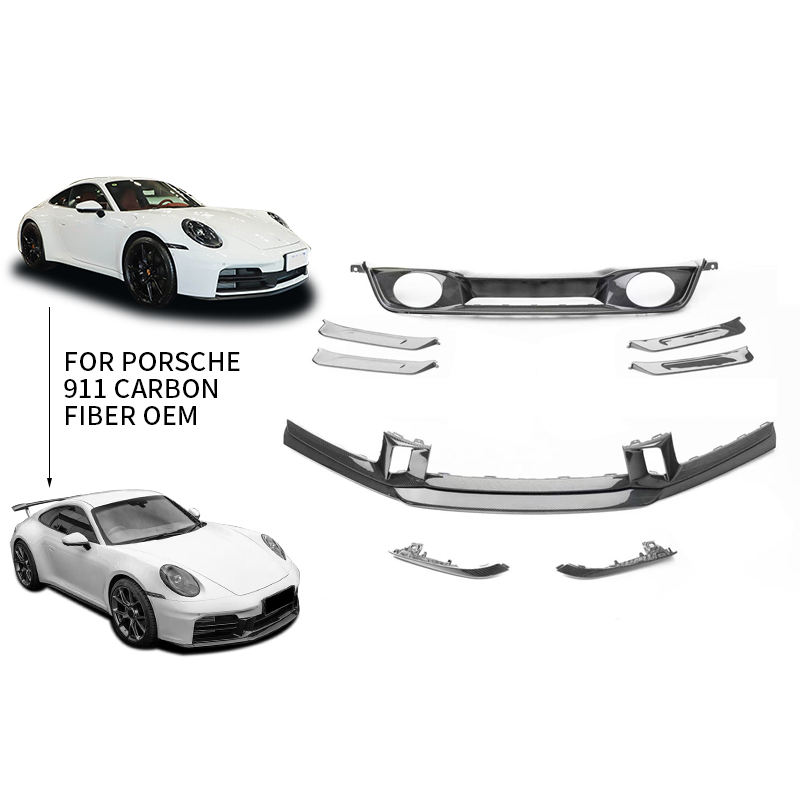 Kit carrosserie en fibre de carbone sèche de style OEM de haute qualité pour Porsche 911 992 992.2, comprenant diffuseur avant et arrière, lames de pare-chocs et bandes de garniture