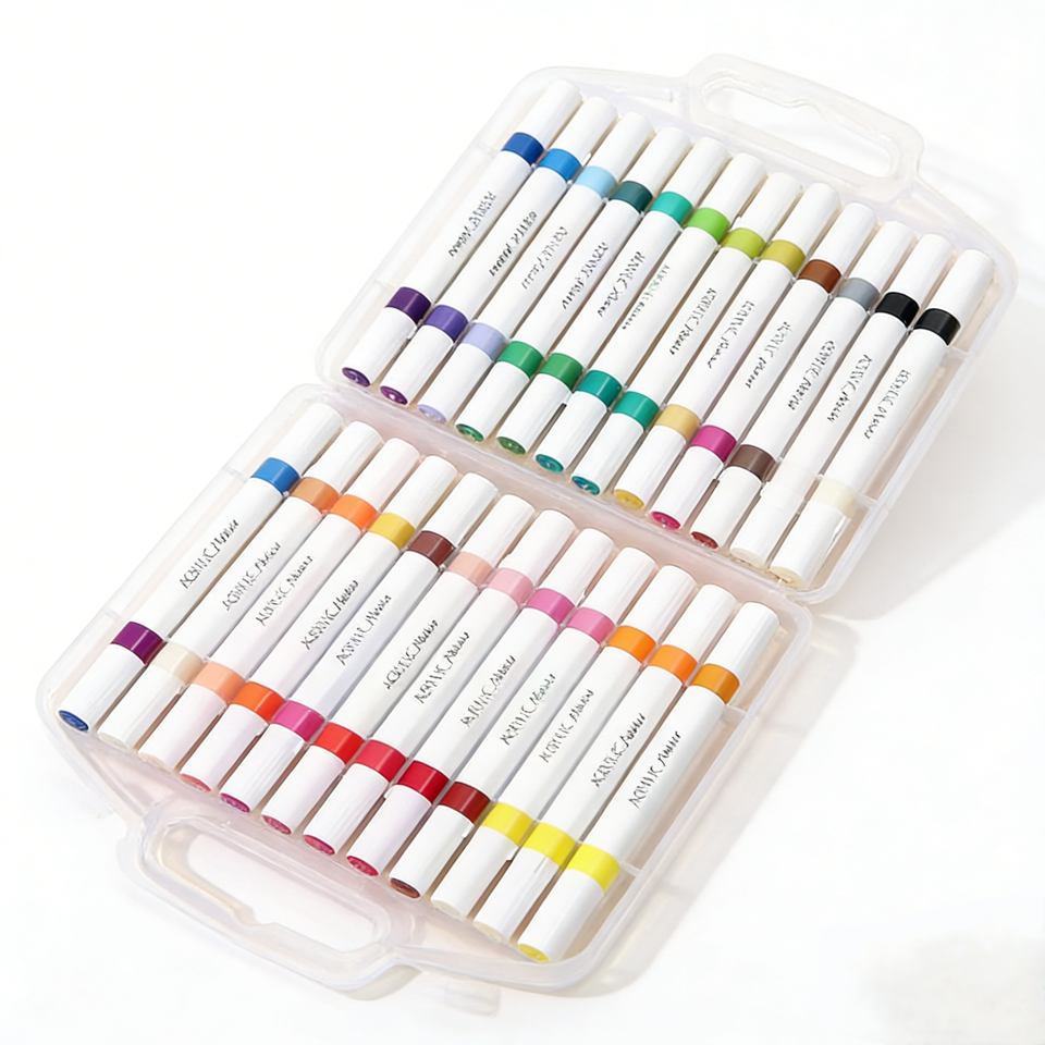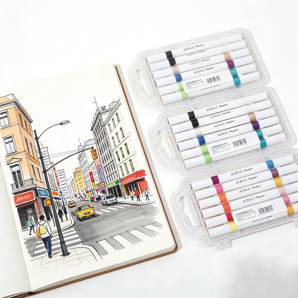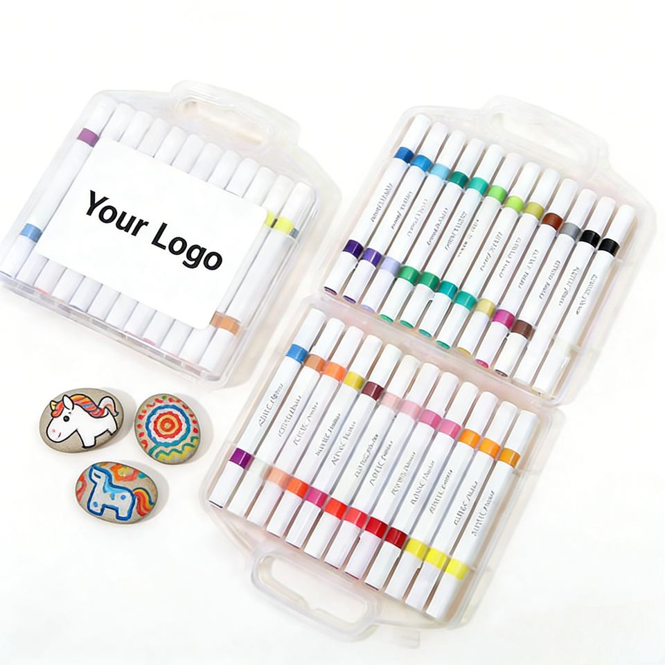 Marqueur de peinture acrylique à double pointe de haute qualité OEM, 48 couleurs, encre à base d'eau, ensemble de stylos pour papier, toile, bois, pierre