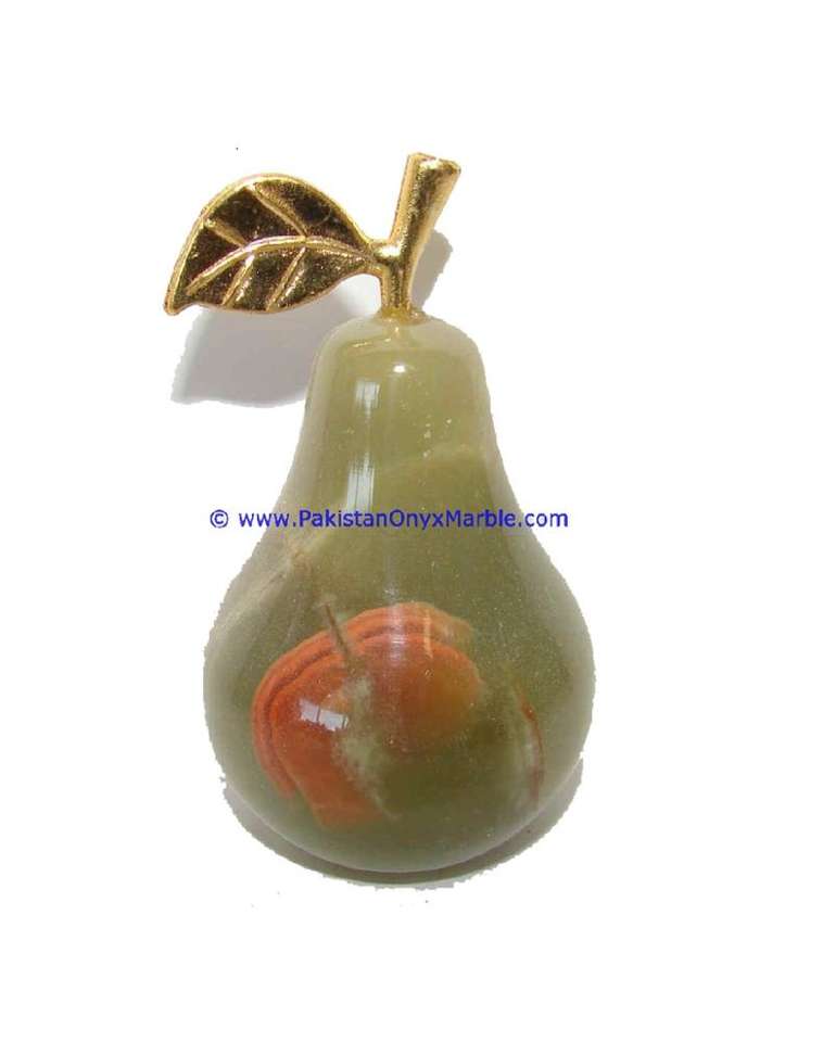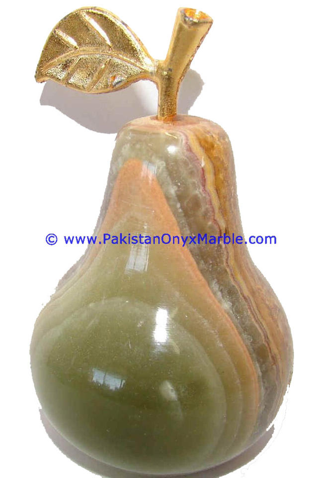High Quality Onyx and Marble Green White Multi Onyx Pears With Brass Stem Leaf ...