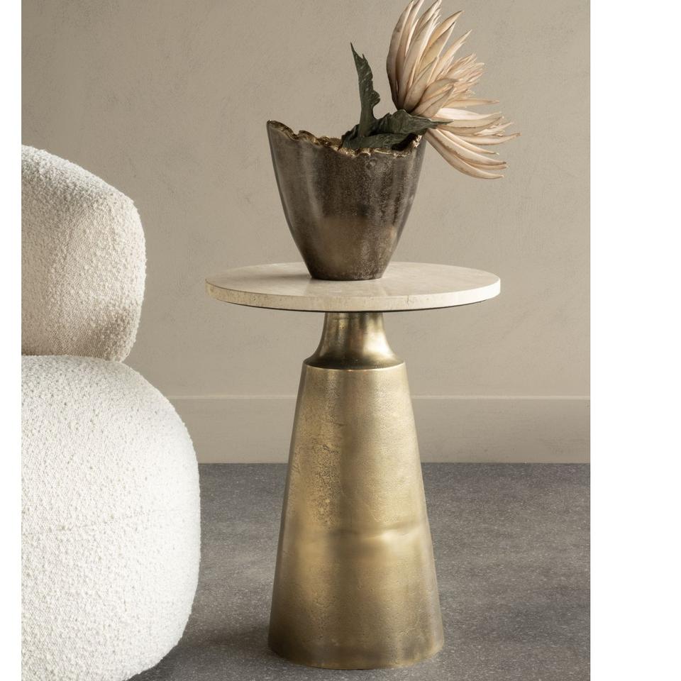 Table d'appoint en aluminium Orante de haute qualité, mobilier de qualité supérieure, accent métallique, tables ottomanes pour hôtel, maison, salon, laiton