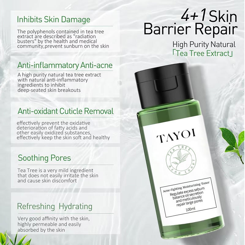 Tonique Clarifiant Anti-acné à l'Huile d'Arbre à Thé Biologique de Haute Qualité Contrôle du Sébum Affinement des Pores Apaisant Tonique Facial à l'Algues Marines