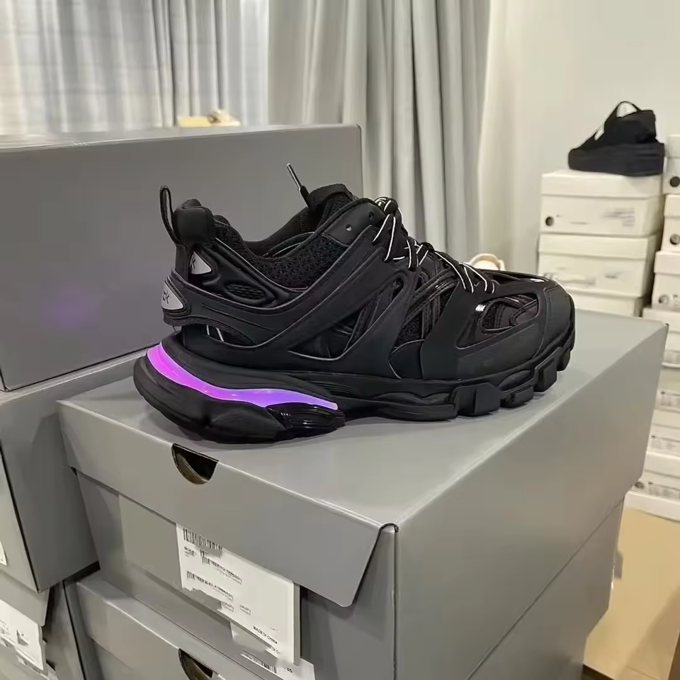 Chaussures de sport rétro LED Track 3.0 de luxe originales en cuir véritable de haute qualité pour hommes et femmes avec doublure en mesh