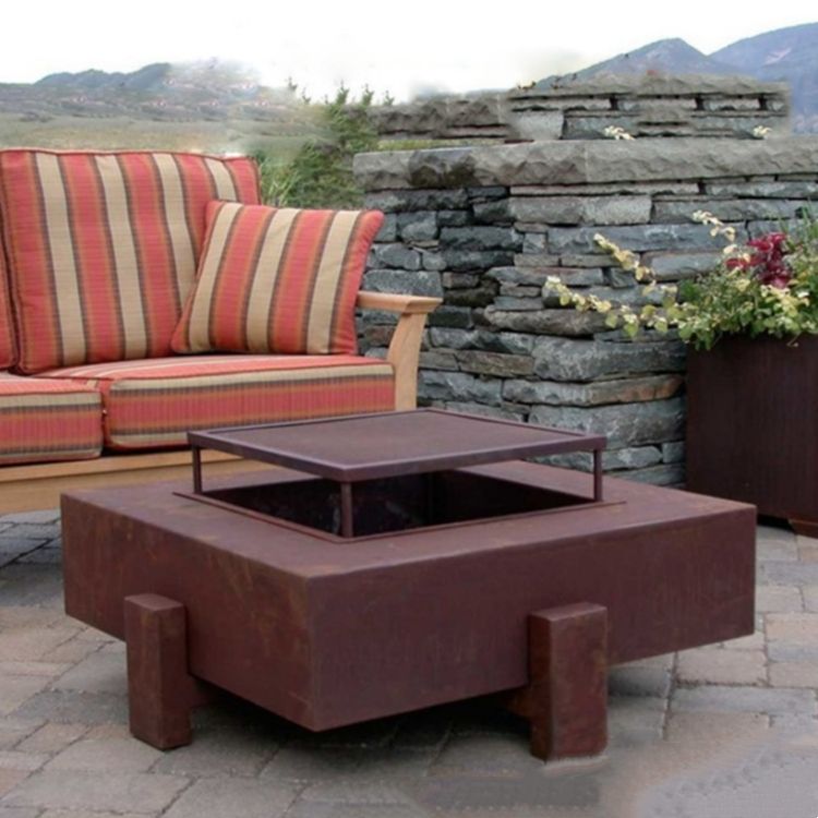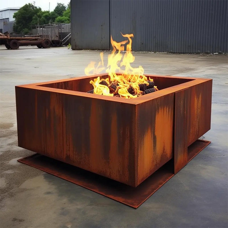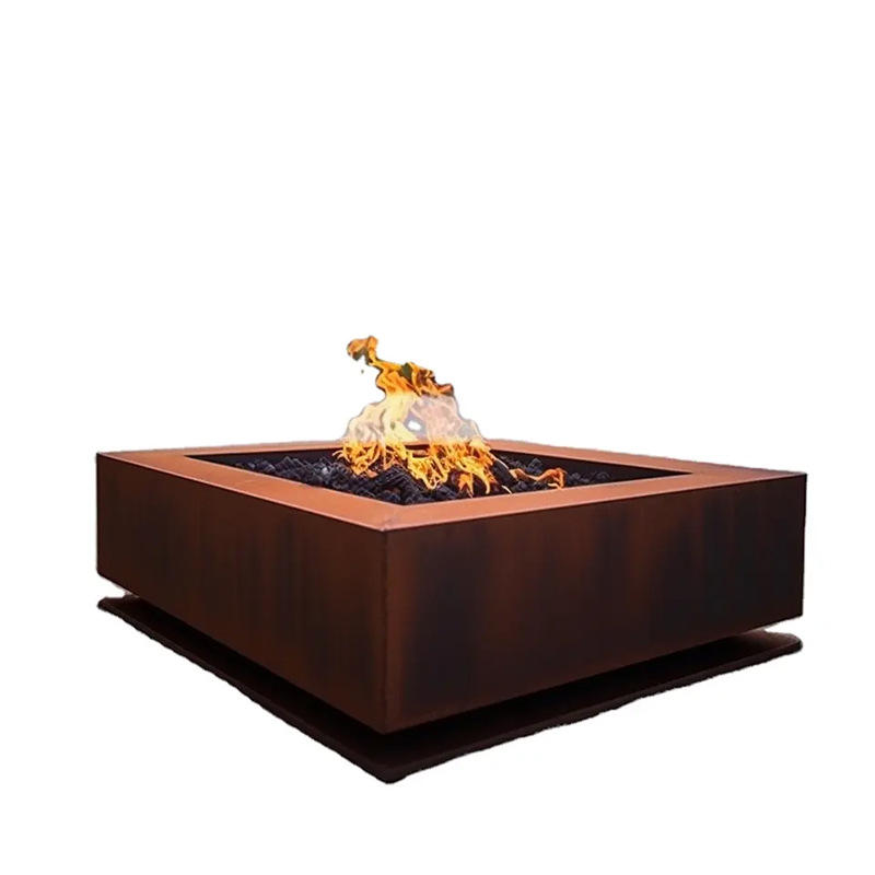 Foyer carré extérieur de haute qualité en acier corten foyer rectangulaire à bois à vendre