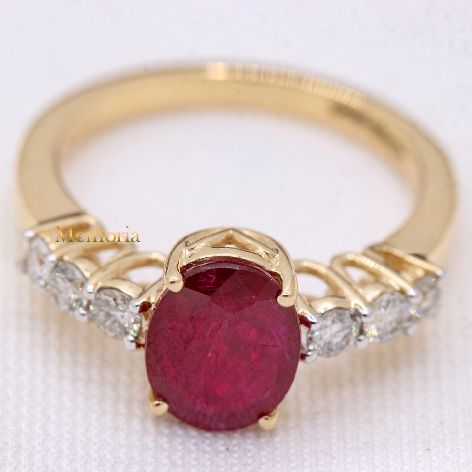 Item Name:Ruby & Diamond Yellow Gold Ring