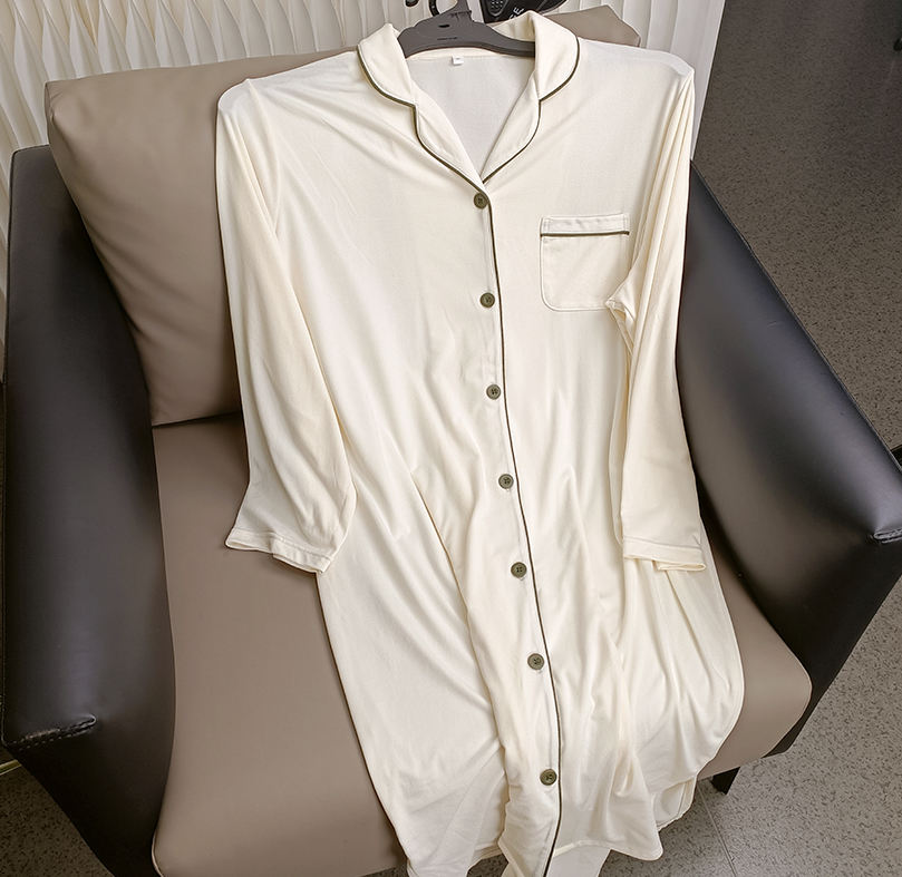 Haute qualité surdimensionné été Polyester Modal confortable doux col rond T-Shirt manches longues une pièce pyjamas vêtements de nuit pour femmes