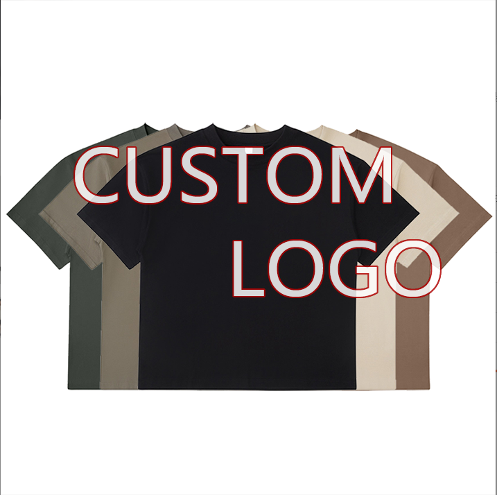 T-shirt Homme Col Rond Manches Courtes Coupe Boxy Imprimé Numérique Qualité Supérieure 100% Coton Épais 250 g/m² Épaules Tombantes
