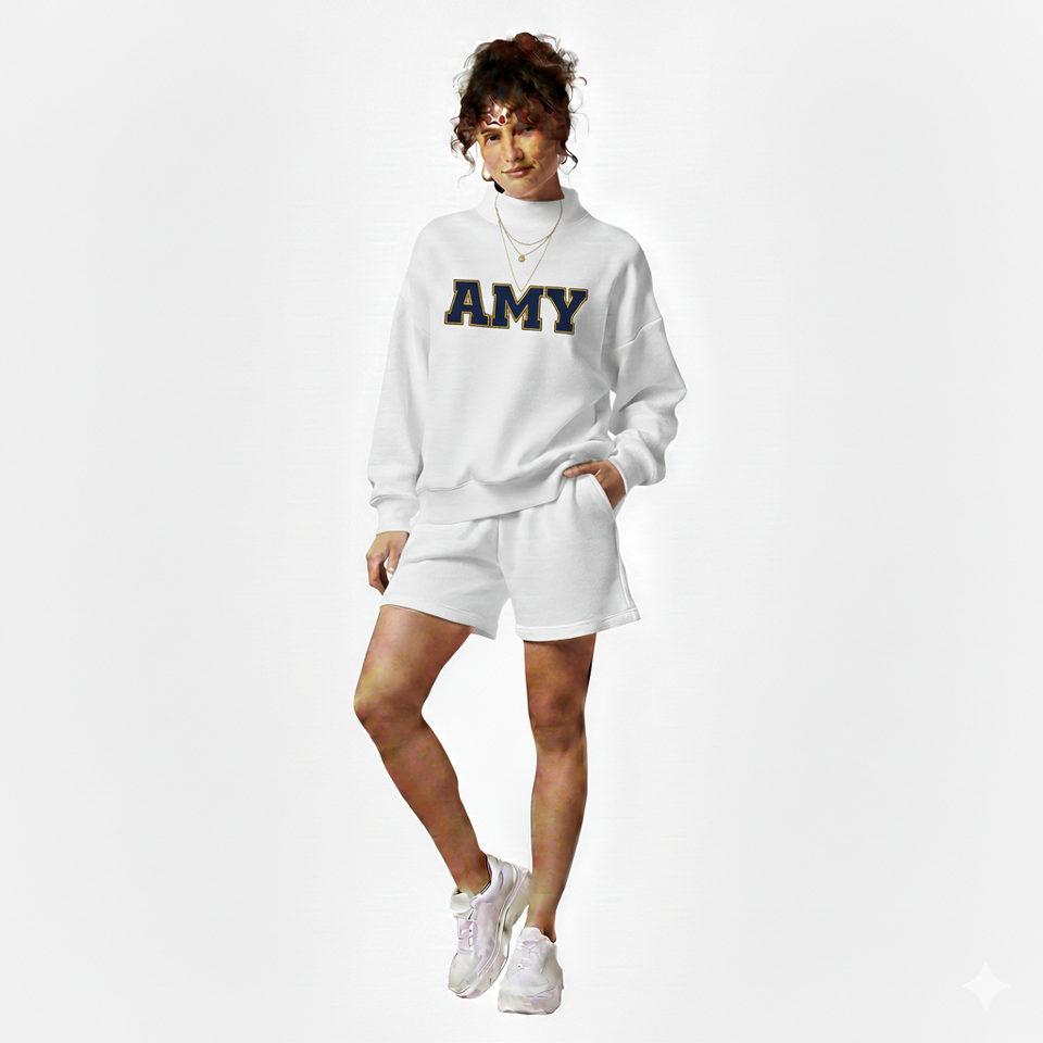 Ensemble deux pièces hiver pour femme : sweat-shirt molletonné oversize à col montant et short, de haute qualité