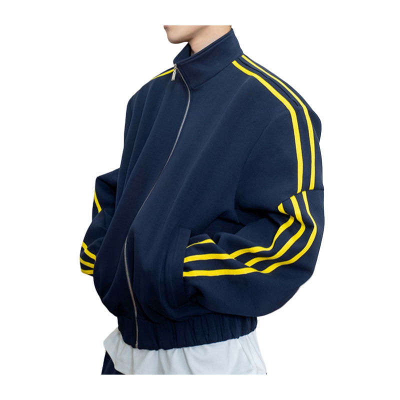 Ensemble sweat à capuche oversize vintage de haute qualité pour l'hiver, avec bande latérale contrastante, col montant, veste à capuche et pantalon de survêtement ample pour homme