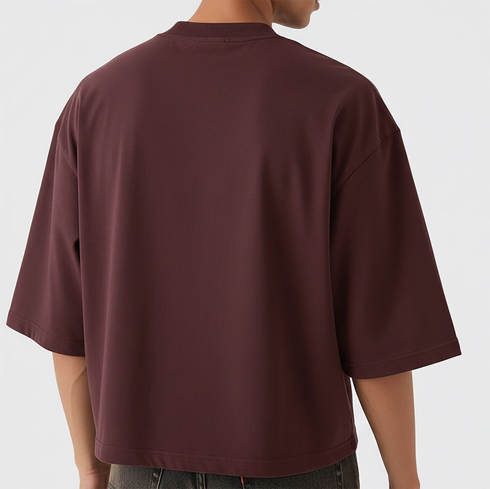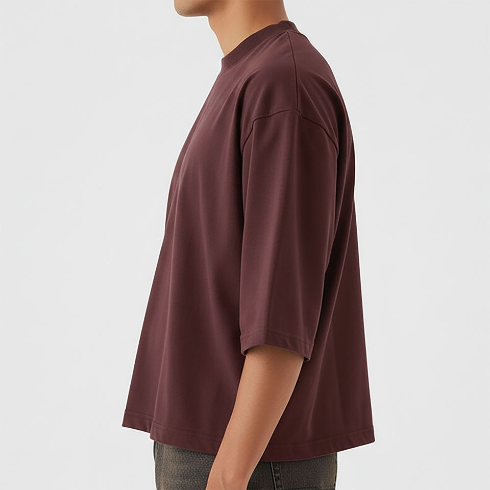 T-shirt homme de haute qualité, coupe ample, manches longues, couleur unie, col rond, léger, 100% coton jersey, style crop top, t-shirt à bords contrastants