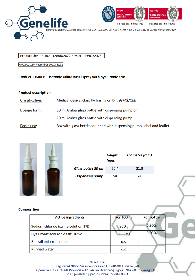 Haute qualité PF400173 acide hyaluronique isotonique vaporisateur nasal salin dispositif médical classe IIA efficace pour la rhinite allergique