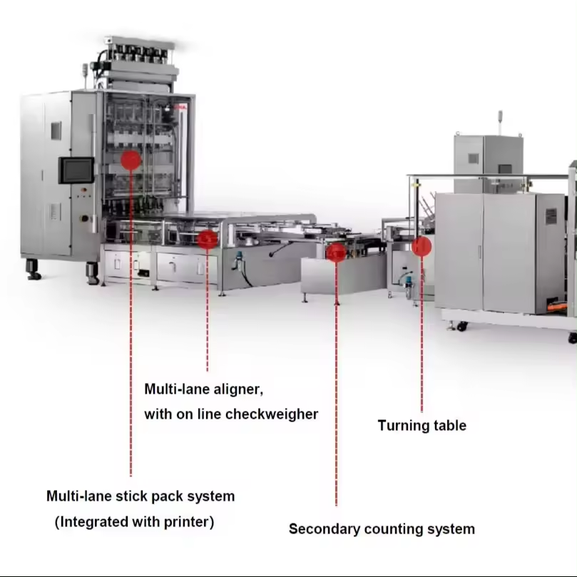 Machine de remplissage et de scellage automatique PLC de haute précision pour liquides, poudres, boissons en sachets stick pack et sacs plastiques, avec moteur.