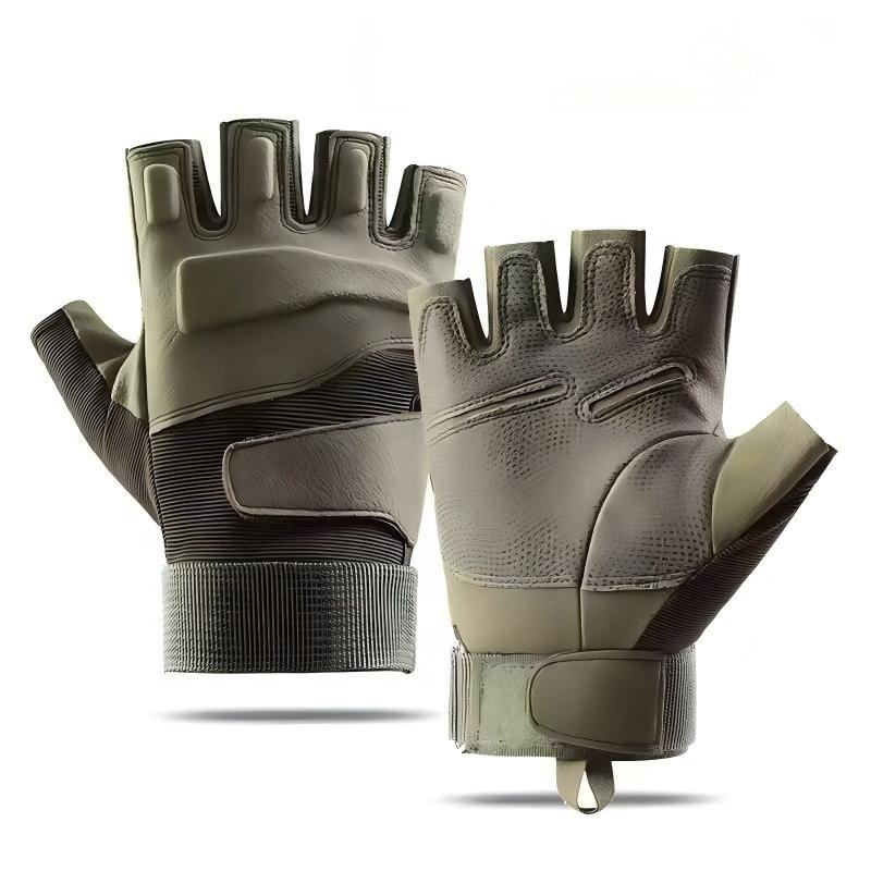 Gants tactiques demi-doigts en PU de haute qualité pour les sports de plein air, la chasse, le cyclisme, l'équitation et la randonnée - Conception antidérapante