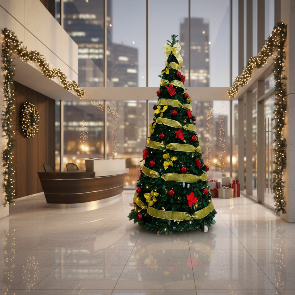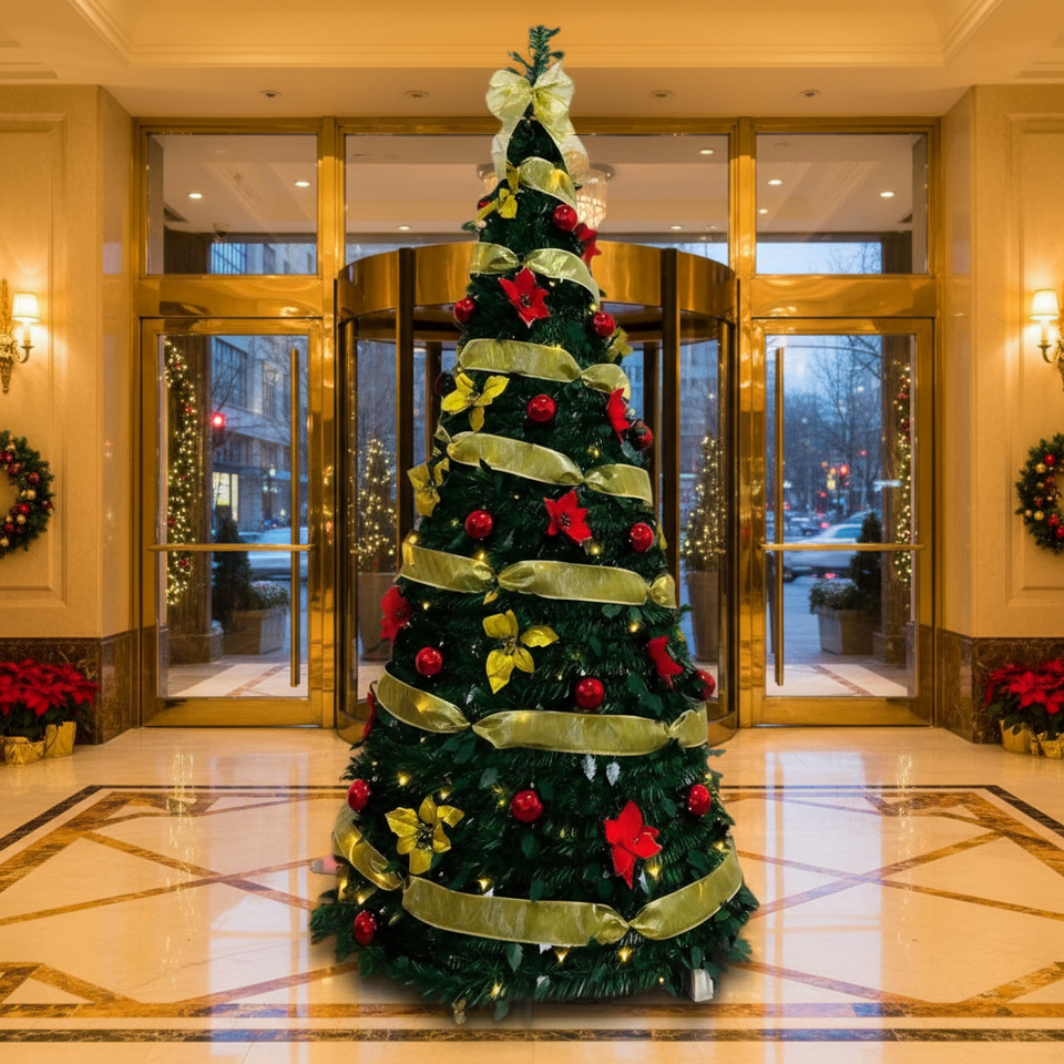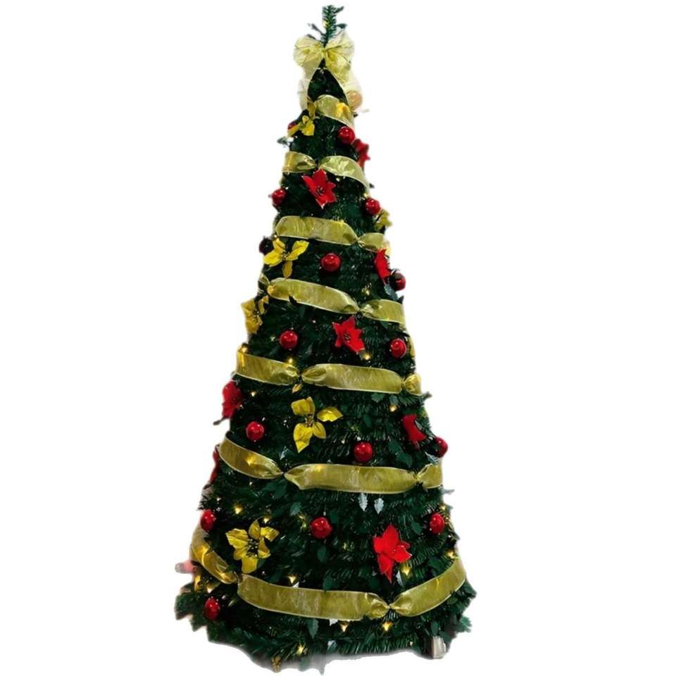 Sapin de Noël pliable pré-décoré en PVC de haute qualité, écologique, avec base autoportante, lumières LED et décorations