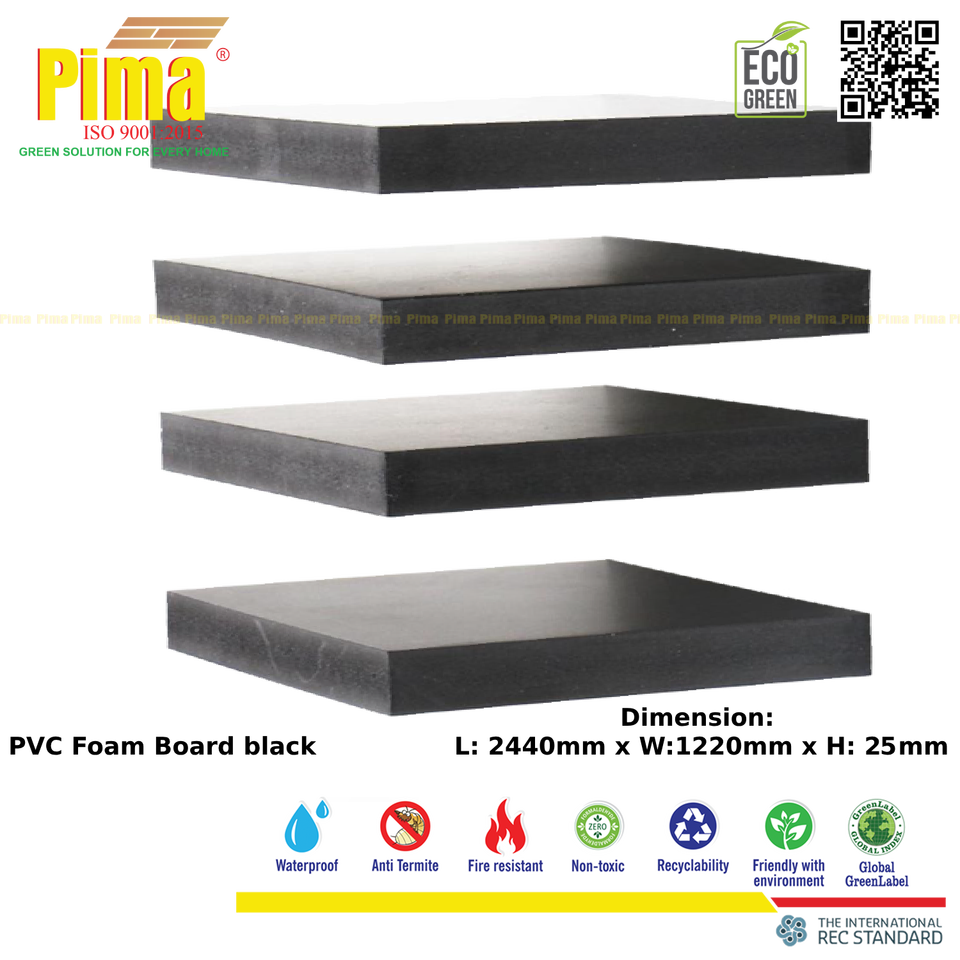 Feuille de panneau de mousse de PVC WPC de haute qualité 25mm épaisseur 0.6G/cm3 densité couleur noire panneaux de Surface personnalisés pour la publicité
