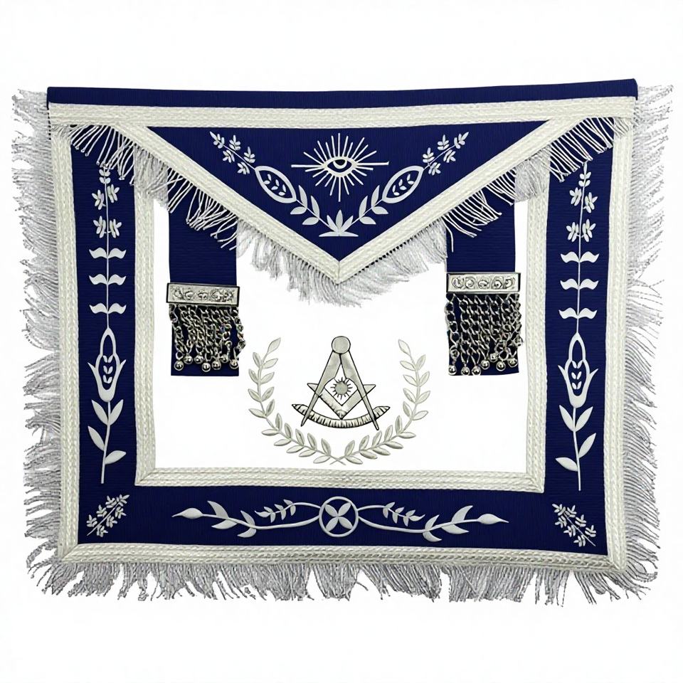Tablier de Maître Maçon de Haute Qualité, Blanc et Bleu Royal avec Broderie Argentée, Tabliers de Régalia Maçonniques Personnalisés