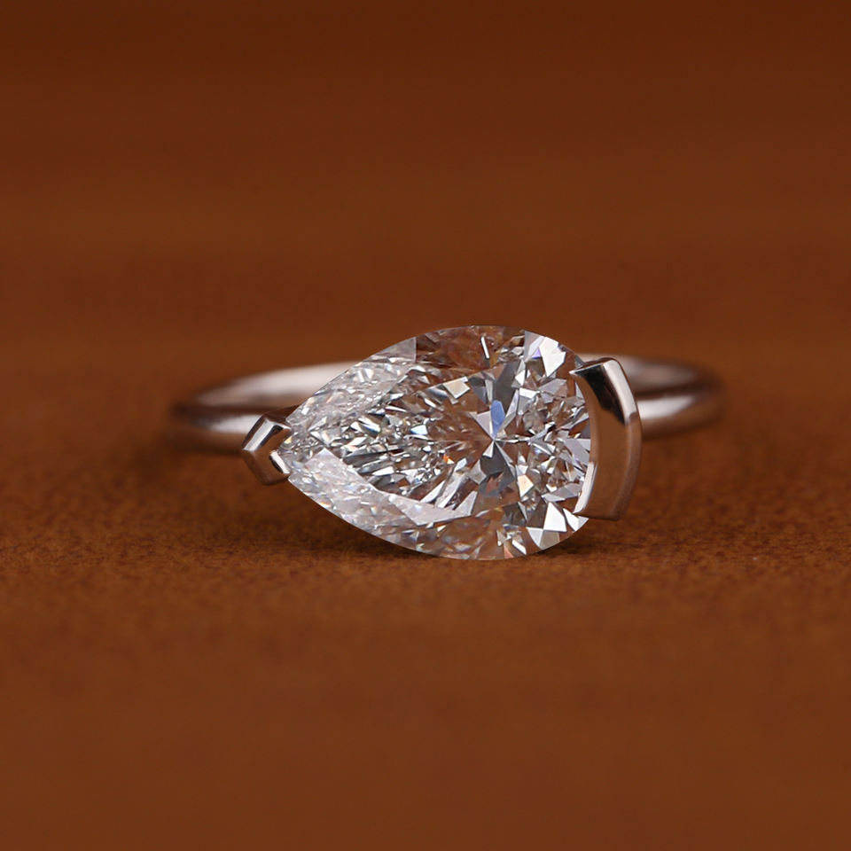 Bague Solitaire Minimaliste de Mariage en Or Massif 14 carats Certifiée IGI pour Femme, avec Diamant CVD de Laboratoire Taille Poire de Haute Qualité