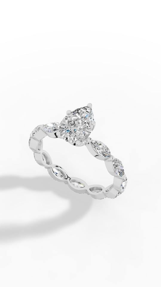 Bague Solitaire et Alliance Éternité en Diamant de Laboratoire Taille Poire et Taille Marquise de Haute Qualité, Or 14K, Fournisseur OEM de Bijoux Fins en Gros