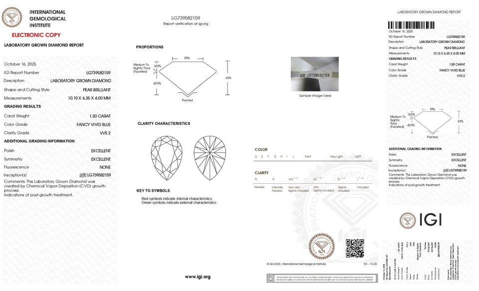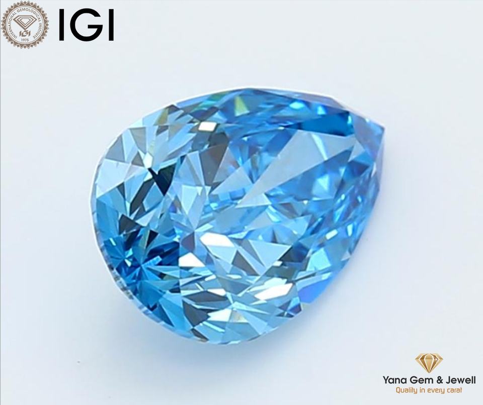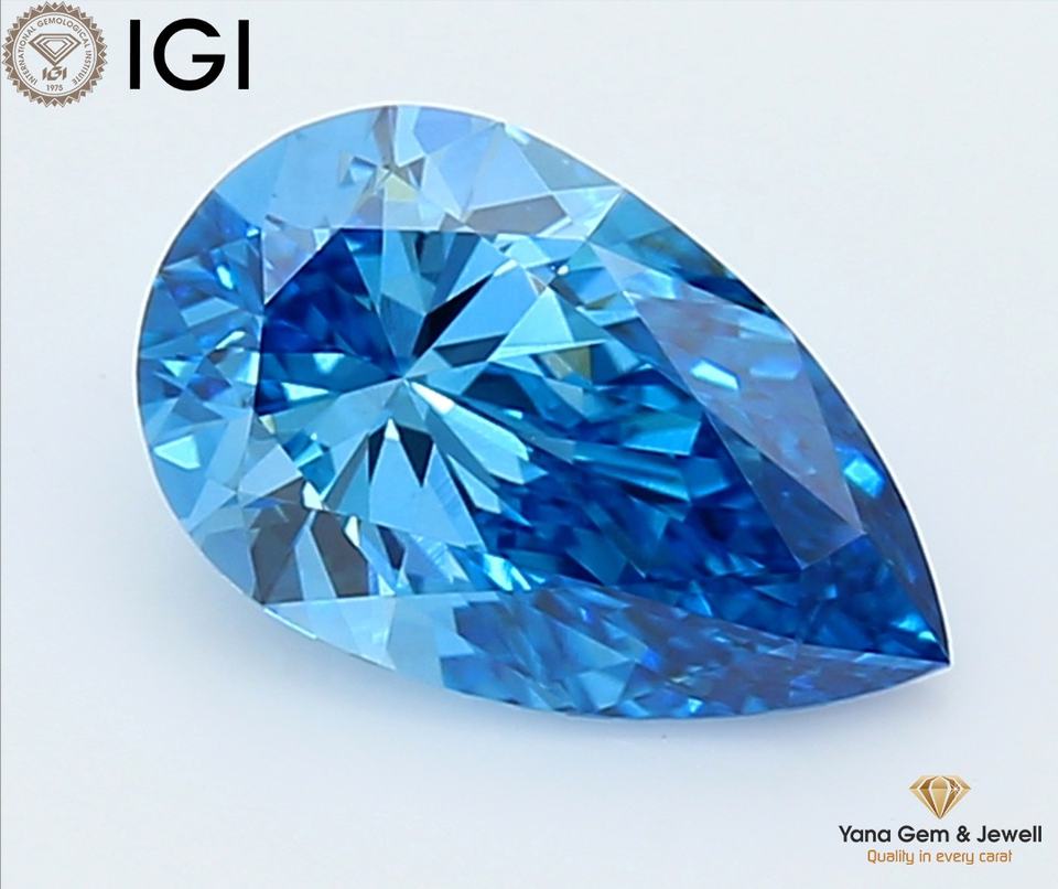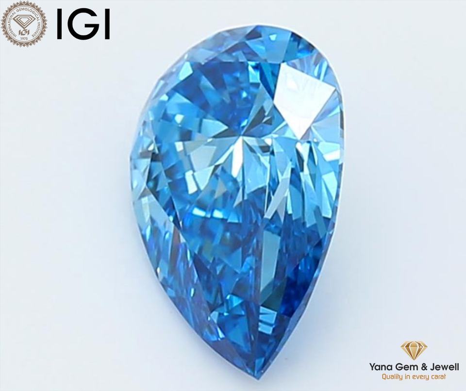 Model Number:Pear CVD 1.50 CT. Fancy Vivid Blue-VVS2