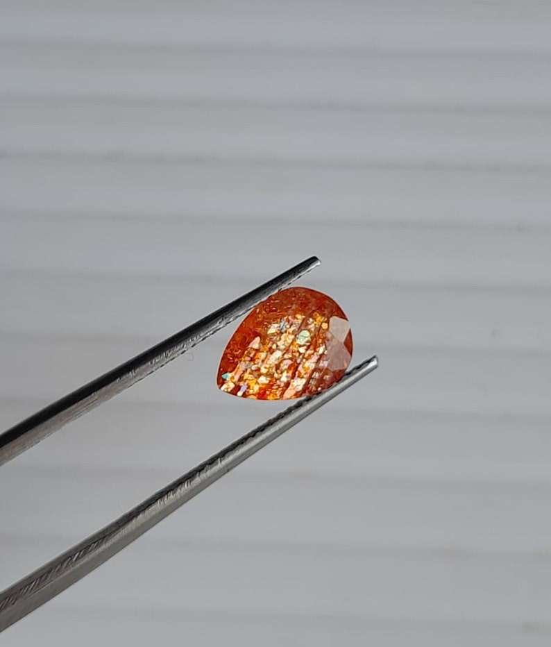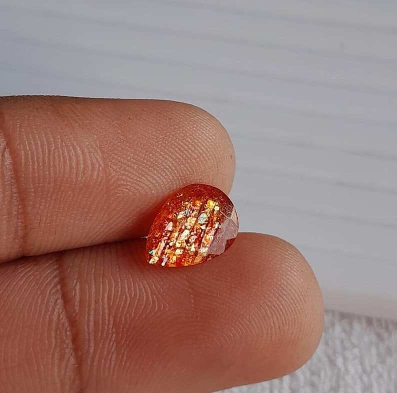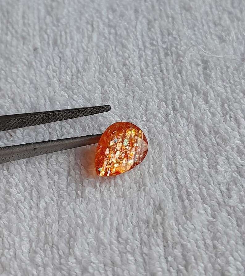 Haute Qualité Poire Forme Orange Étincelle Pierre De Soleil Multi Flocons Étincelant 7X10 MM Forme Poire 100% Naturel Orange Pierre De Soleil En Gros