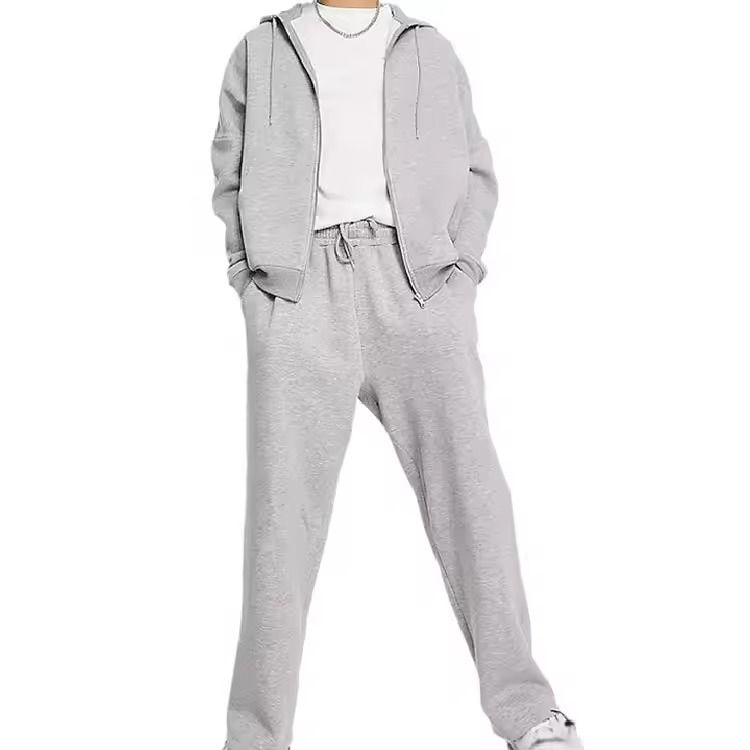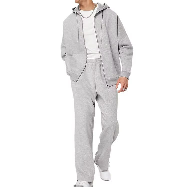 Conception personnalisée de haute qualité personnalisé confortable gris fermeture éclair survêtement survêtements Street-wear pantalons de survêtement et ensembles évasés à capuche