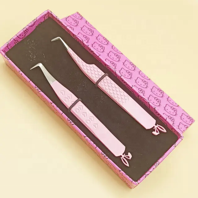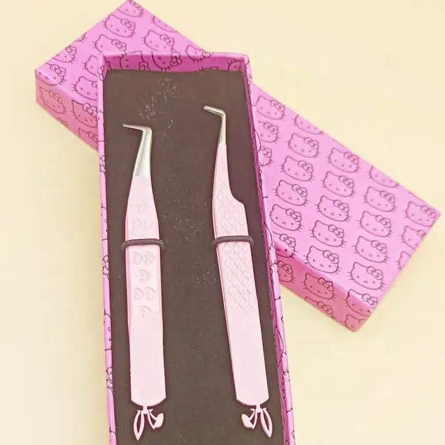 Haute qualité couleur rose volume russe botte mince et 45 degrés pince à épiler extension de cils nouveau Design pince à épiler volume de cils