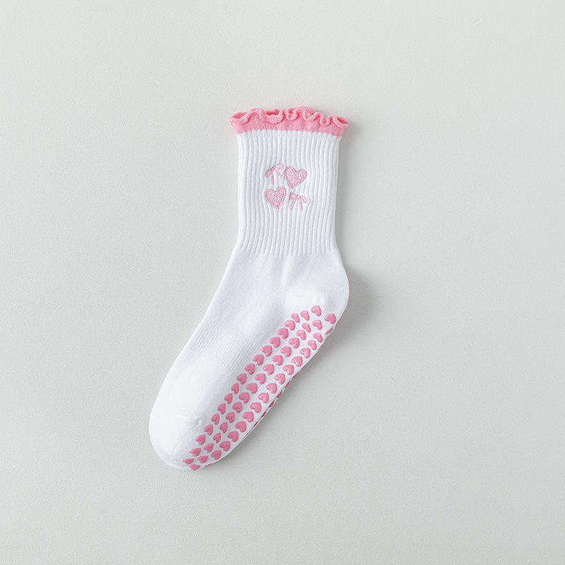 Chaussettes de Pilates de haute qualité en rose avec poignées antidérapantes, chaussettes de yoga à volants, broderie personnalisée, chaussettes de Pilates
