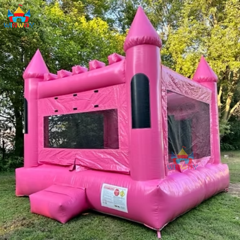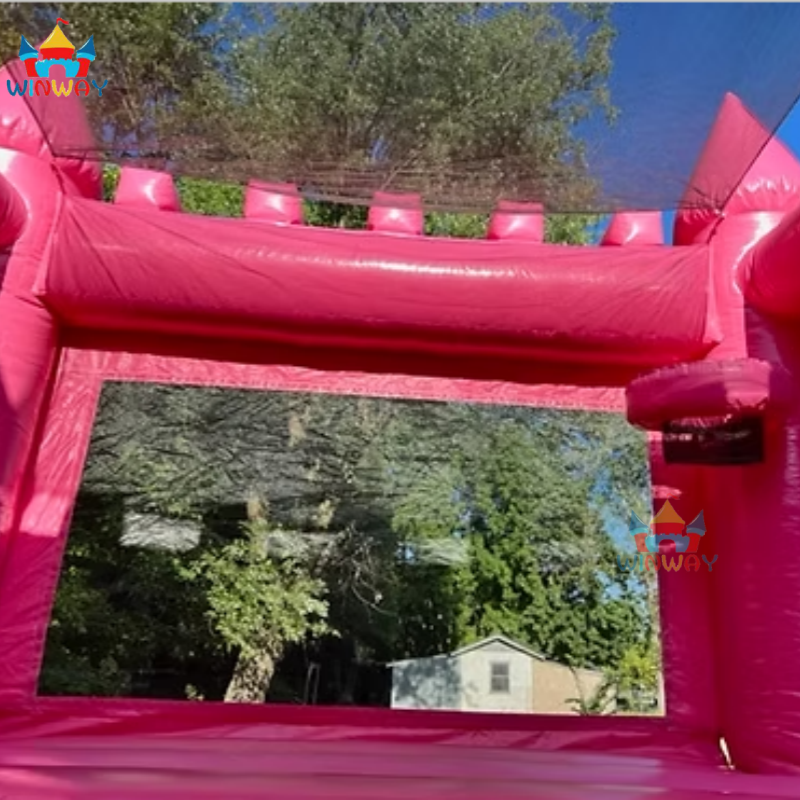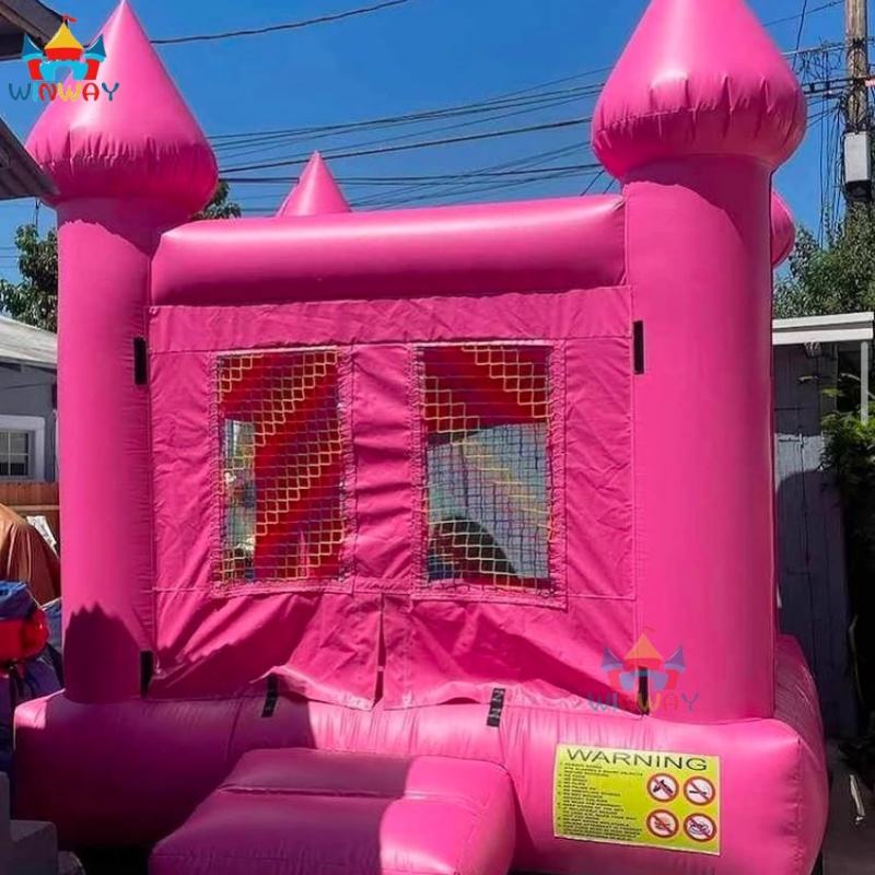 Château gonflable rose de haute qualité en PVC de 0,55 mm WINWAYTOYS 5x5m Capacité 5-10 personnes Installation facile