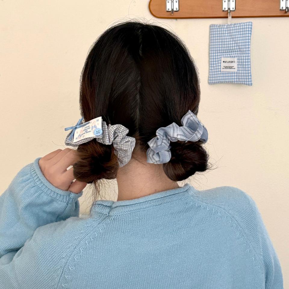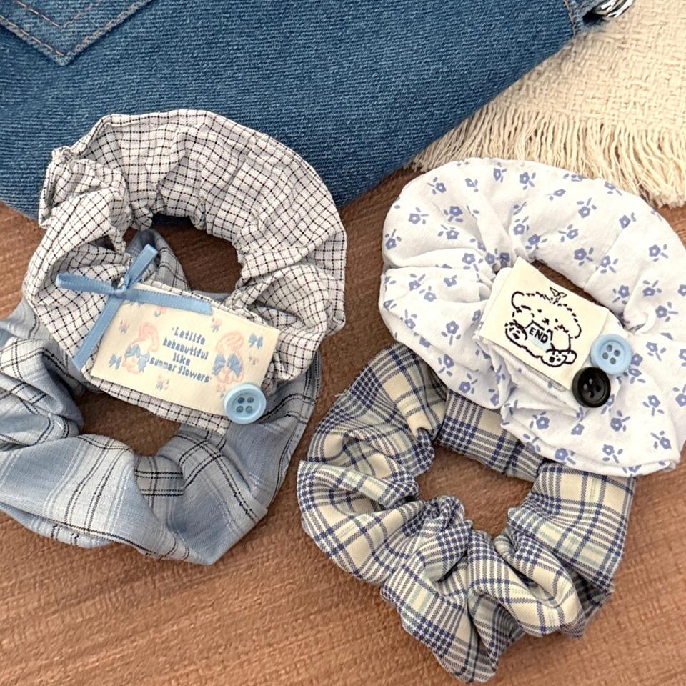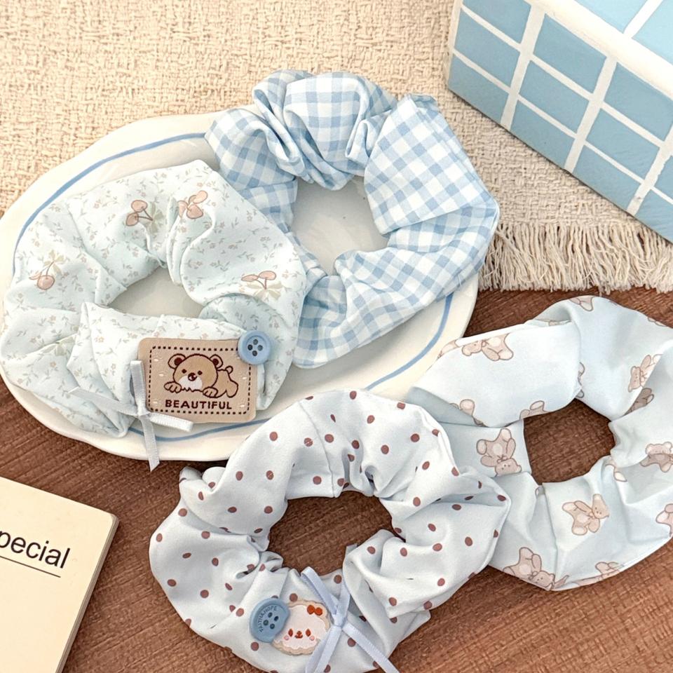 Chouchous à carreaux de haute qualité avec bouton Patch de dessin animé mignon chien arc conception coton cheveux cravates