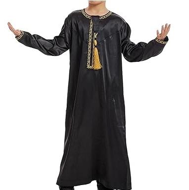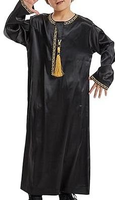 Thobes pour enfants en soie polyester de couleur noire unie de haute qualité, Jubbah traditionnelle, vente en gros, services OEM, thobes respirants