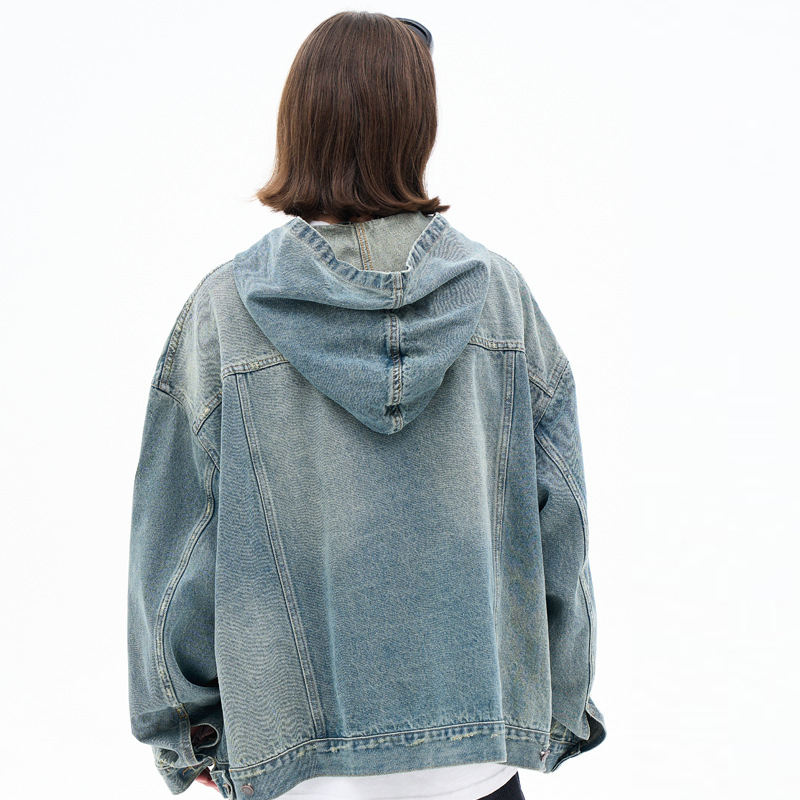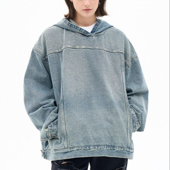 Sweat à capuche en denim de coton imperméable et écologique 380 g/m², brodé et perlé, sans cordon, coupe ample et oversize, haute qualité, pour l'hiver