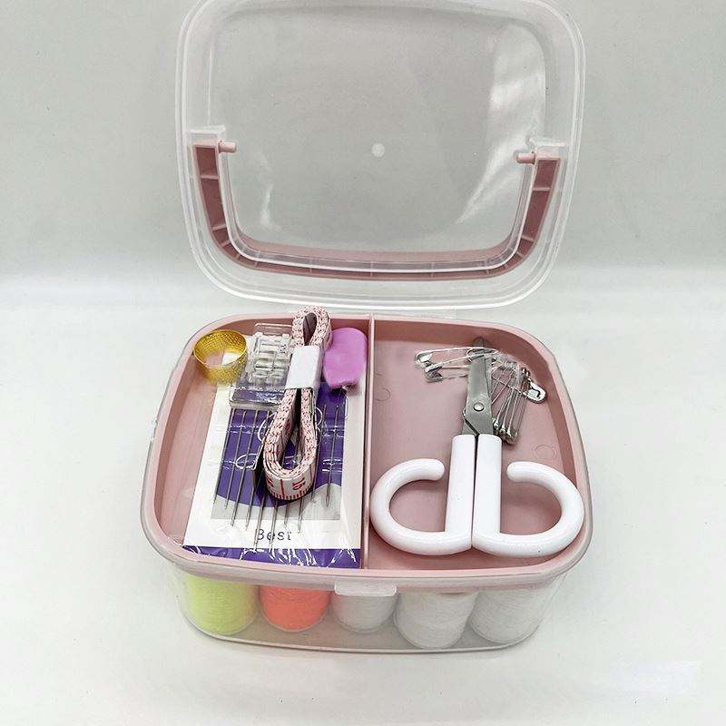 Nom du produit:Boîte de kit de couture portable avec fil, ciseaux, aiguilles et règle