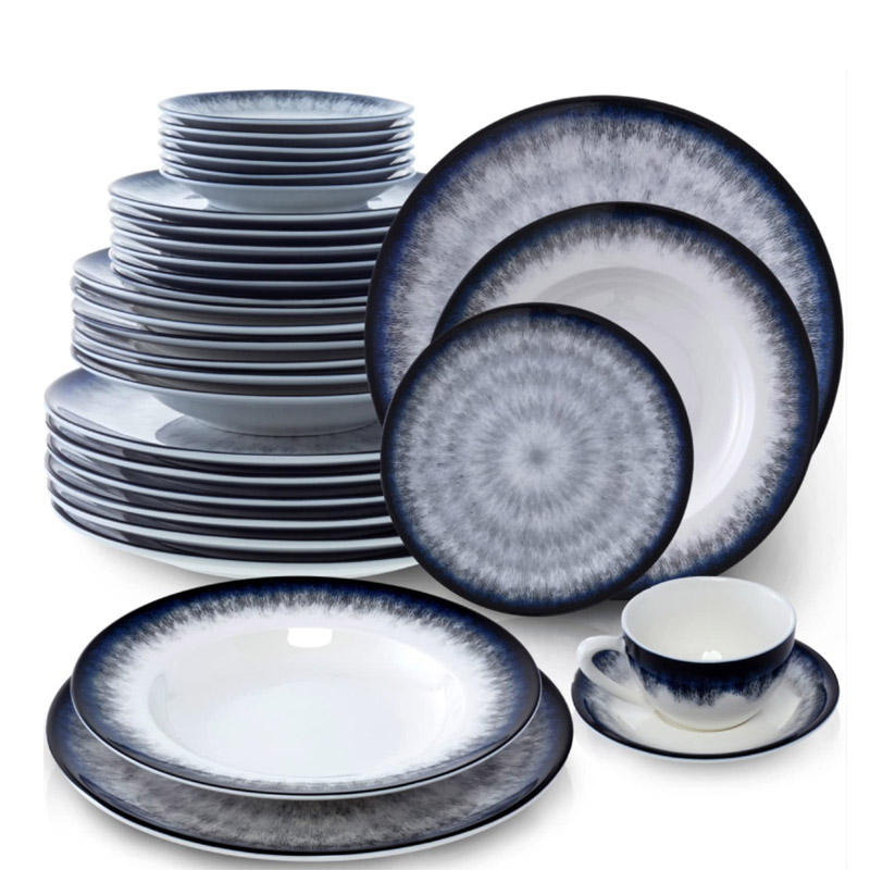 Veweet — Service de table en porcelaine, ensemble d'assiettes de qualité supérieure 36 pièces, moderne, Service de crocheter bleu blanc, en céramique, vaisselle pour 6 personnes