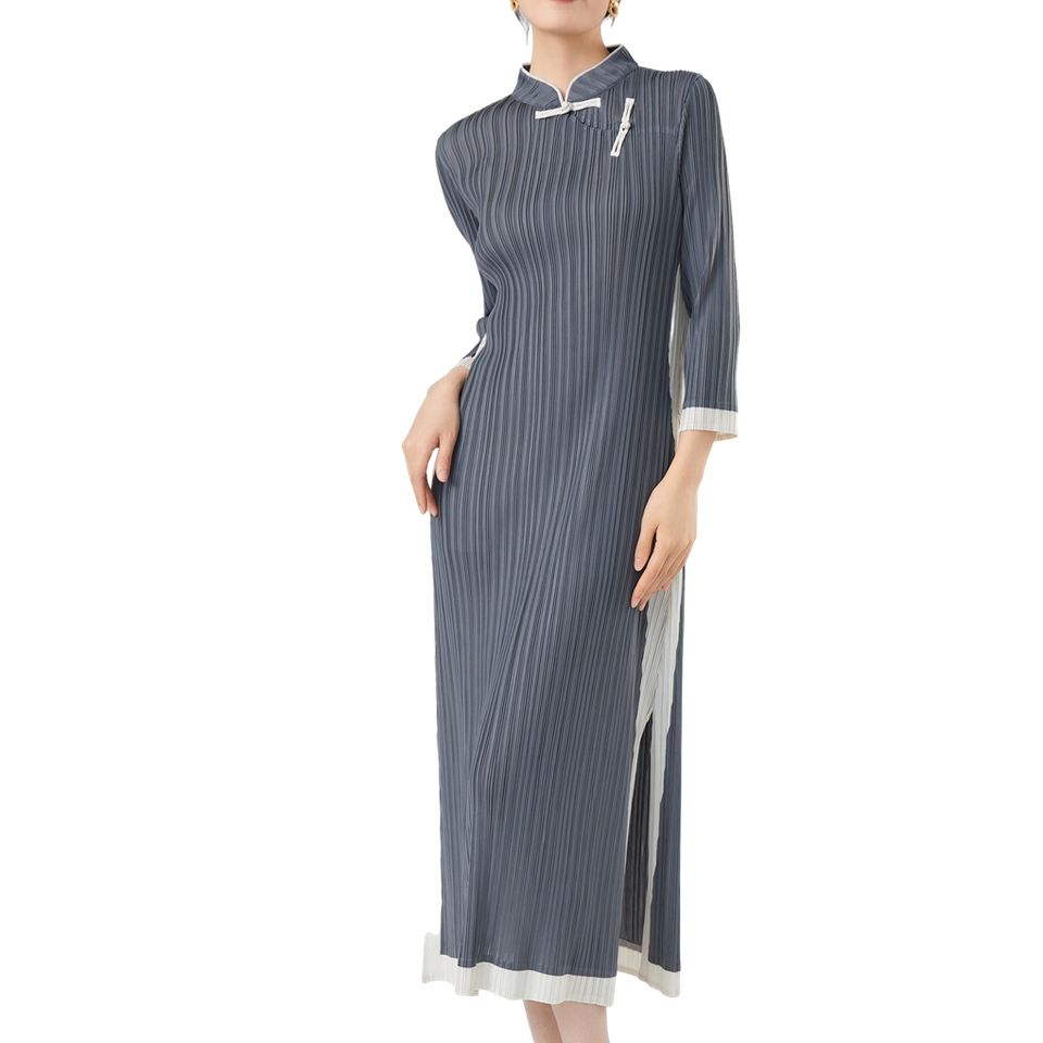 Haute qualité plissé froncé Midi robe chinoise pour les femmes asie du sud-est Offre Spéciale lâche élégant Cheongsam fente