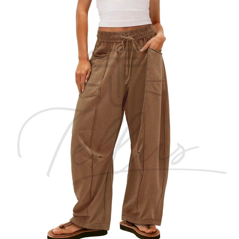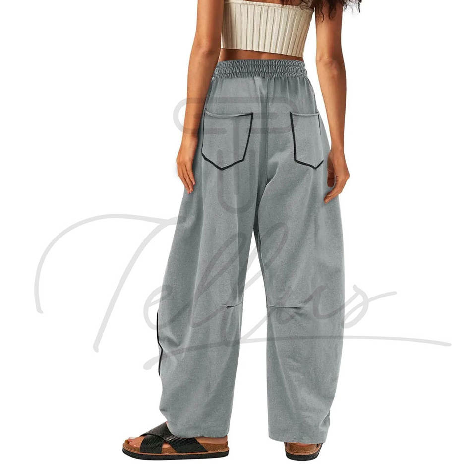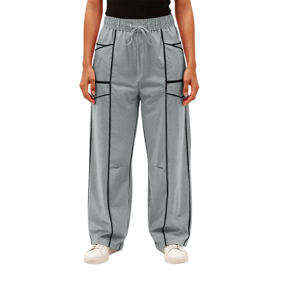 Pantalon de jogging cargo en toile respirante de haute qualité pour femme, grande taille, crocheté, coupe large avec cordon de serrage