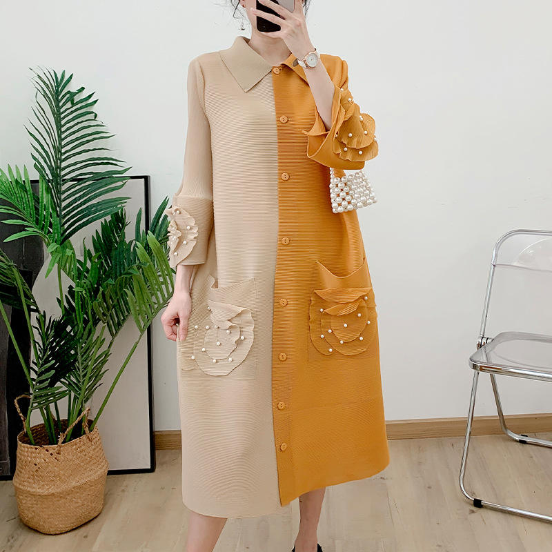 Haute qualité grande taille femmes africaine Maxi Caftan robe contraste couleur perles lâche simple boutonnage élégant ODM écologique